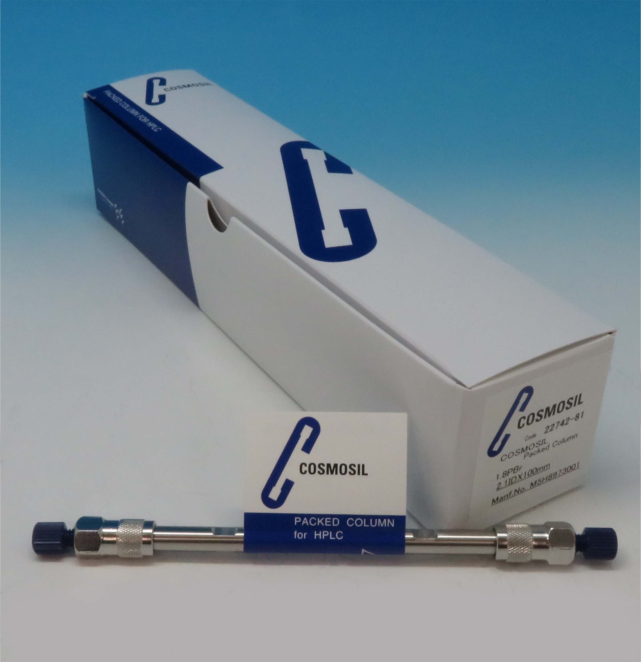 コスモシール PBr はペンタブロモベンジル基を官能基とする、親水性化合物の分離に特化したカラムシリーズです。本製品は粒子径 1.8 μm の超高速液体クロマトグラフィー(UHPLC)用 PBr カラムで、使い慣れた逆相モードの分析条件による親水性化合物の高速分離が可能です。
